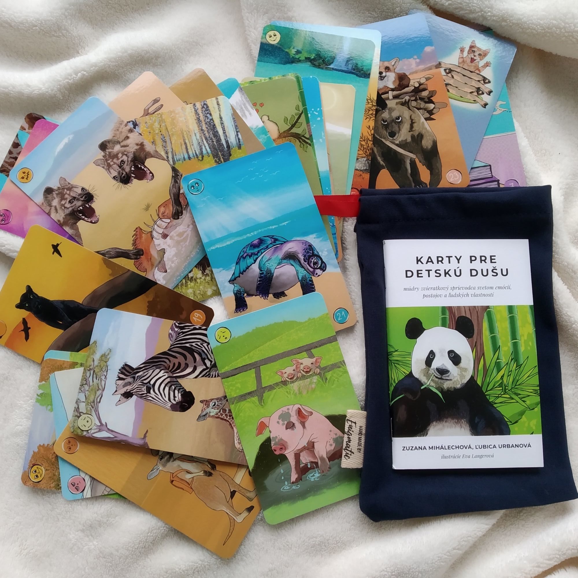 Karty pomáhajú deťom pomenovať svoje pocity, získať nadhľad a uvoľniť napätie v tele. Používajú ich psychológovia, vychovávatelia, učitelia v školách aj v škôlkach. Majú ich už vo viac ako 1500 rodinách na Slovensku aj v Čechách, dodávame v ručne šitých vreckách..