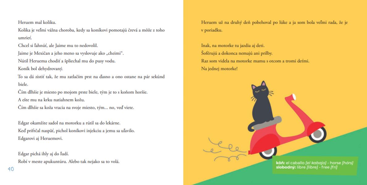 Pre deti od 4 do 9 rokov – 120 strán farebne ilustrovaných príbehov plných španielskych slovíčok, zvierat a byliniek.